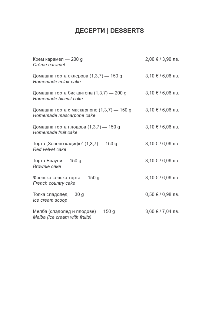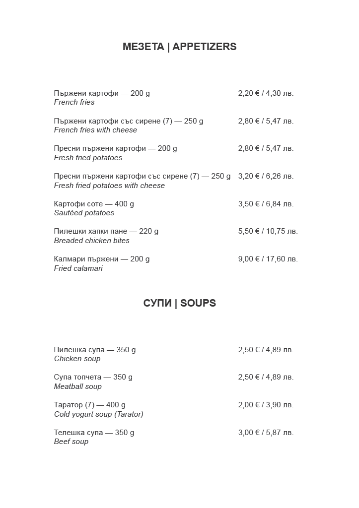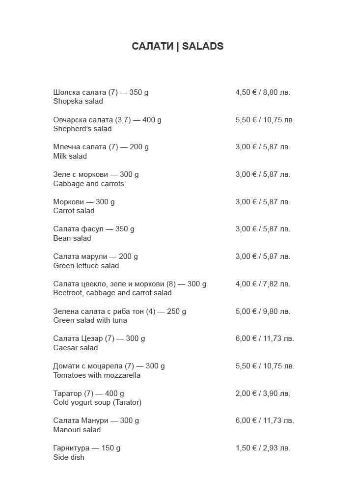 • Меню